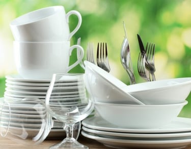 Vaisselle nécessaire (assiettes, couverts, verres, plats, casseroles, etc.),